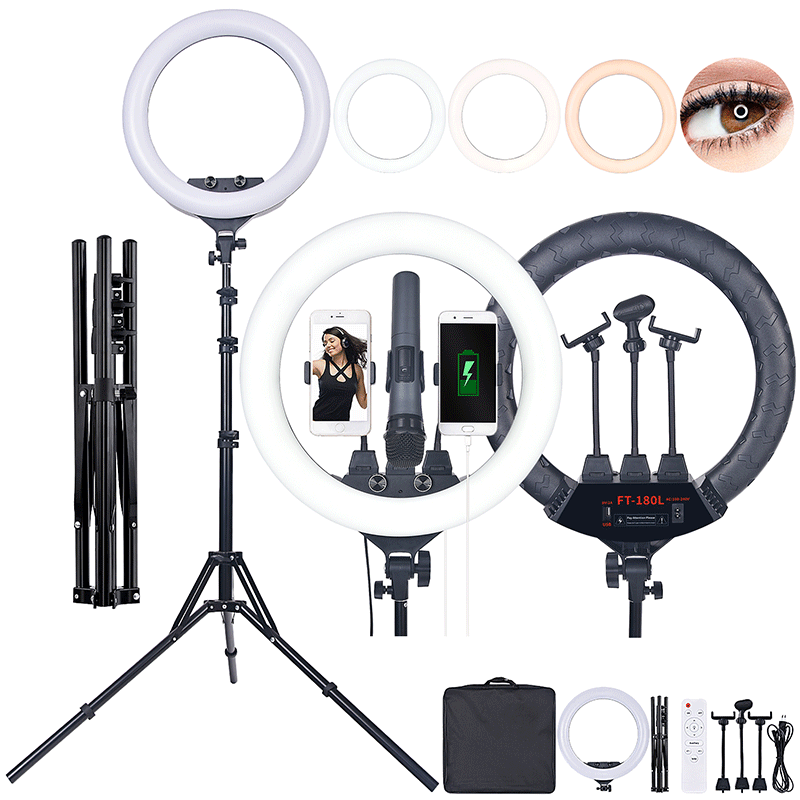 FT-180L LED Ring Light with phone holder and 2M tripod stand