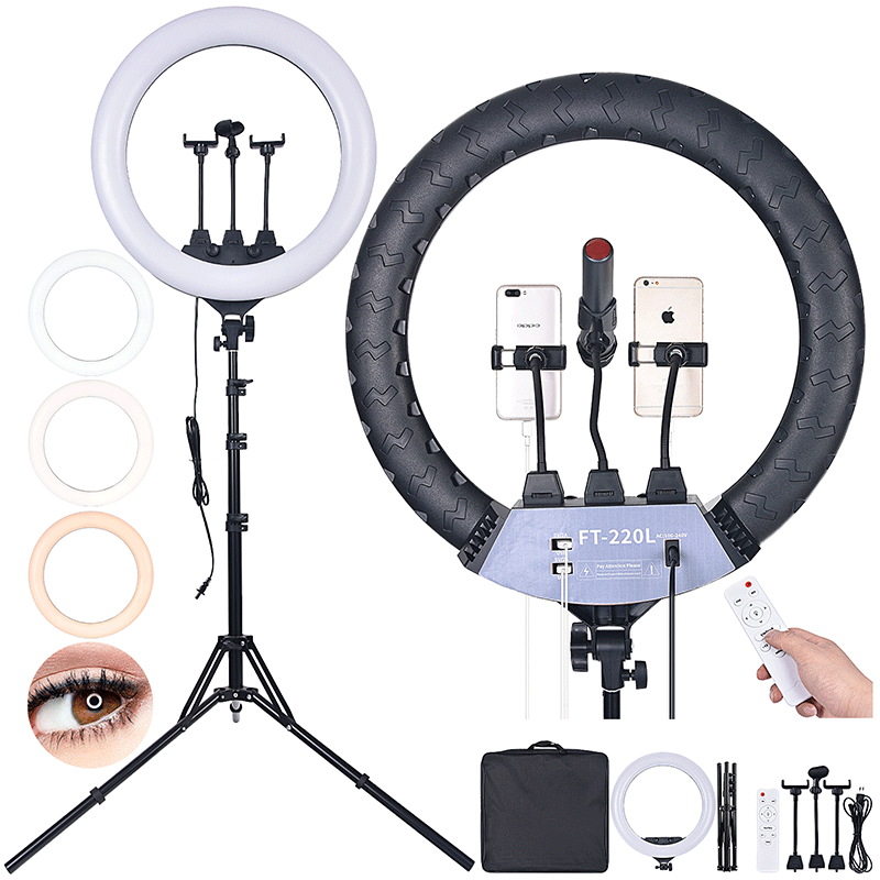 FT-220L LED Ring Light with Phone Holder and 2M Tripod Stand
