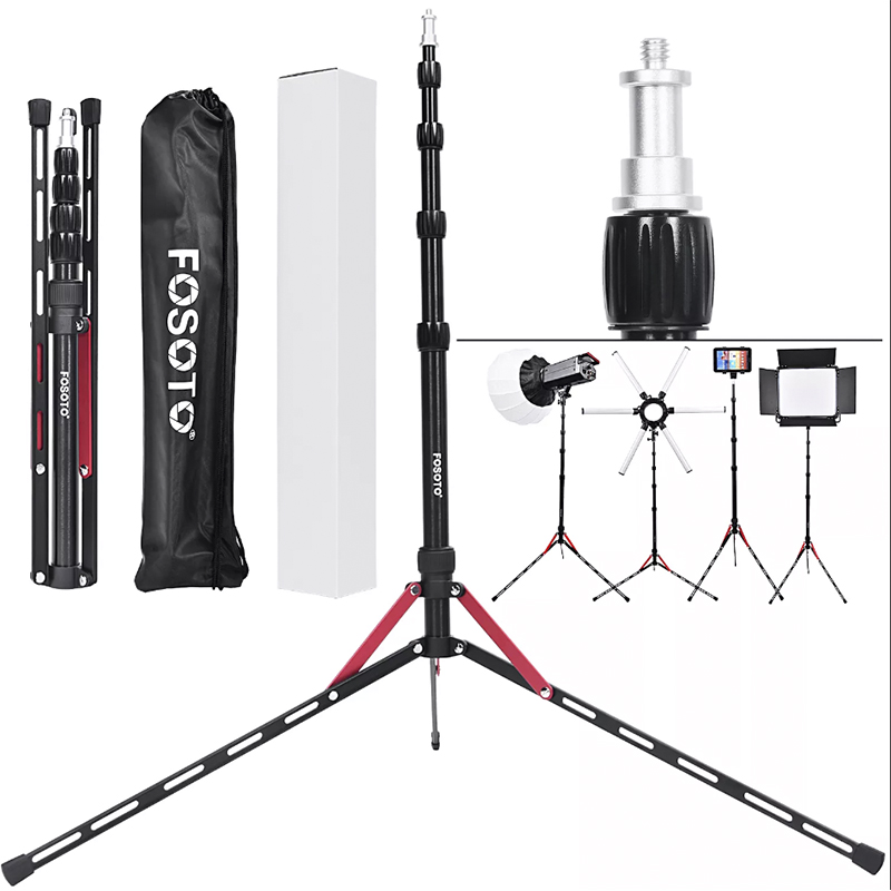 1/4" Universal Screw: it supports most photo equipment such as ring light, smart phone mount, DSLR camera, reflector, softbox, different lights, umbrella, ect. ( Light stand ONLY, Camera and other photography equipments are not included )
