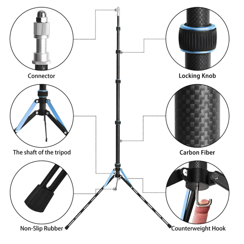 Lightweight and Compact: Made by the high quality Carbon fiber, it supports all major brands of photo equipment such as reflector, softbox, different lights, umbrella, background.